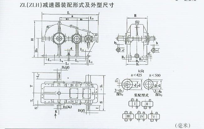 ZS(ZSH)減速器裝配型式及外型尺寸